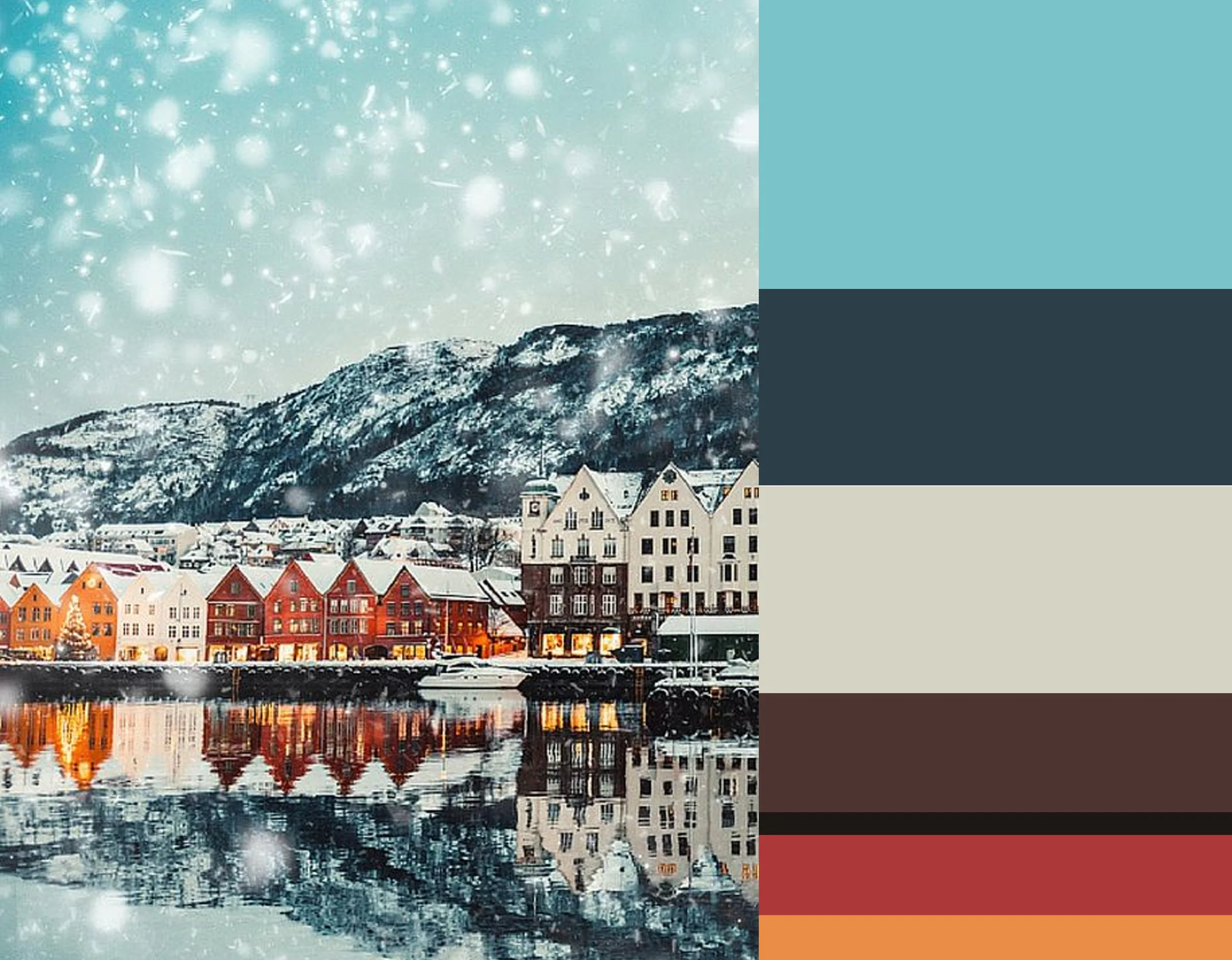 Image Bergen, Norway via Avenly Lane Travel - colors from top down Fairy Tale Blue Benjamin Moore - Twilight Benjamin Moore - James White 2010 Farrow & Ball - Spanish Brown 32 Little Greene - Basalt 221 Little Greene - Terre D'Egypte 247 Farrow & Ball - Pumpkin Pie Benjamin Moore