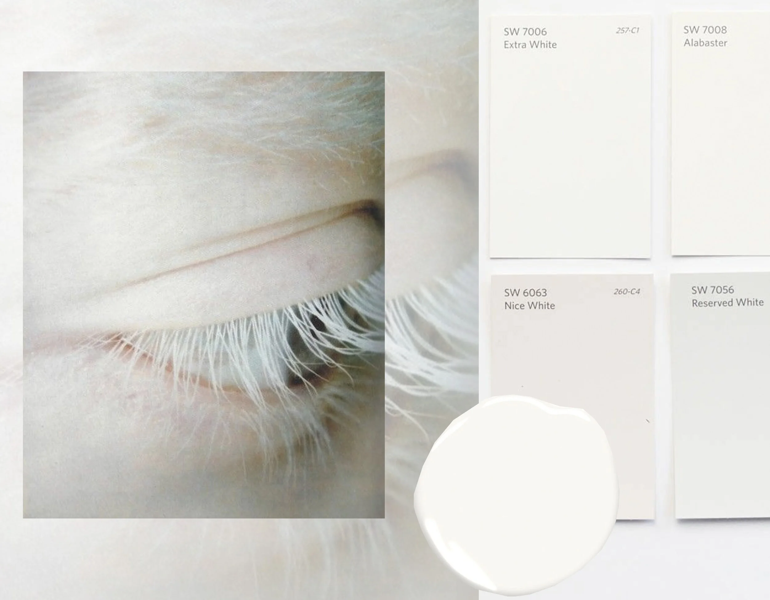 image eye via WGSN - paint swatches Sherwin-Williams via Vintage Revivals - Simply White Benjamin Moore