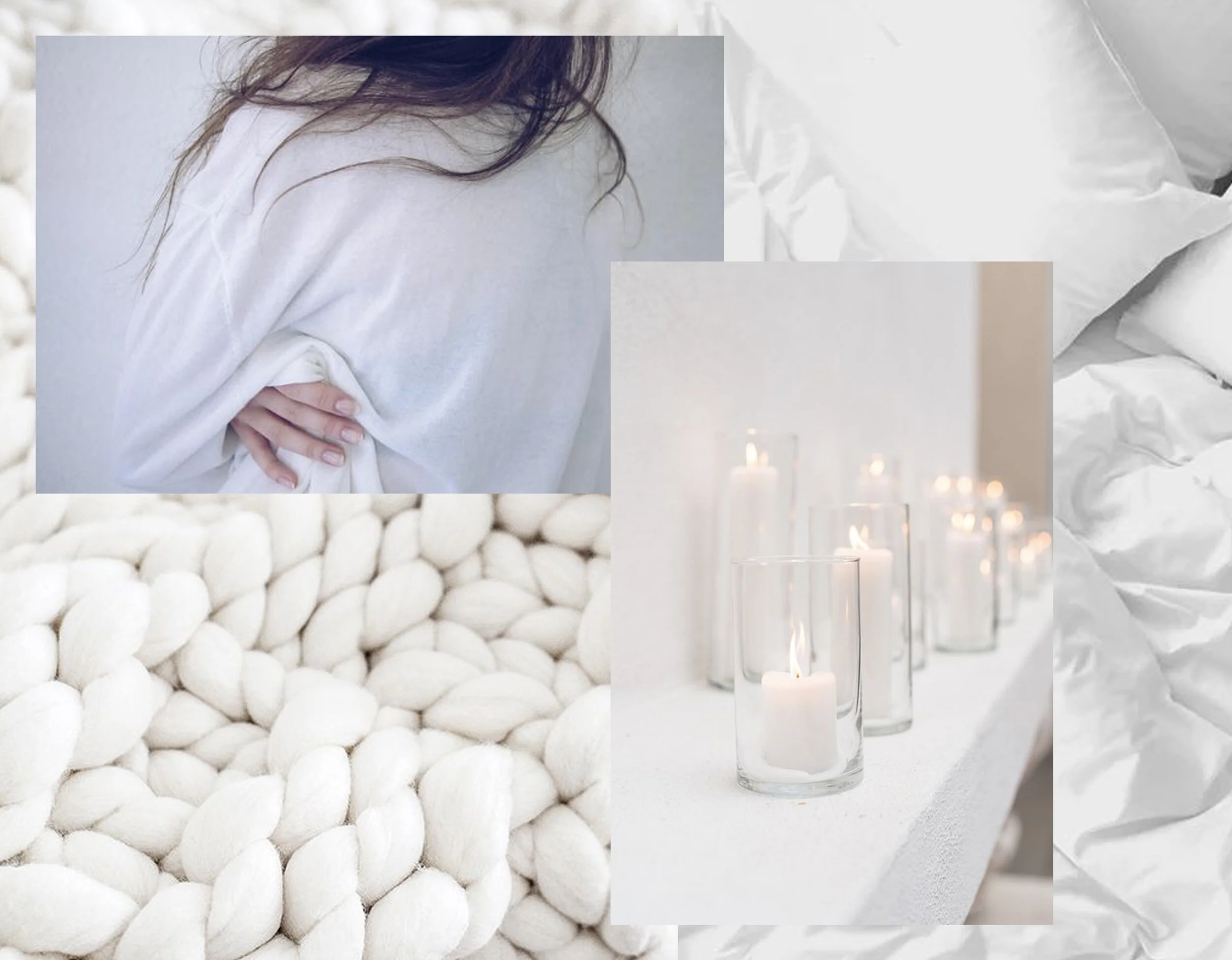 knitted wool via Kara Rosenlund - image woman Darian Nepriakhina via Unsplash - candles - bedlinnen Sylvie Tittel via Unsplash