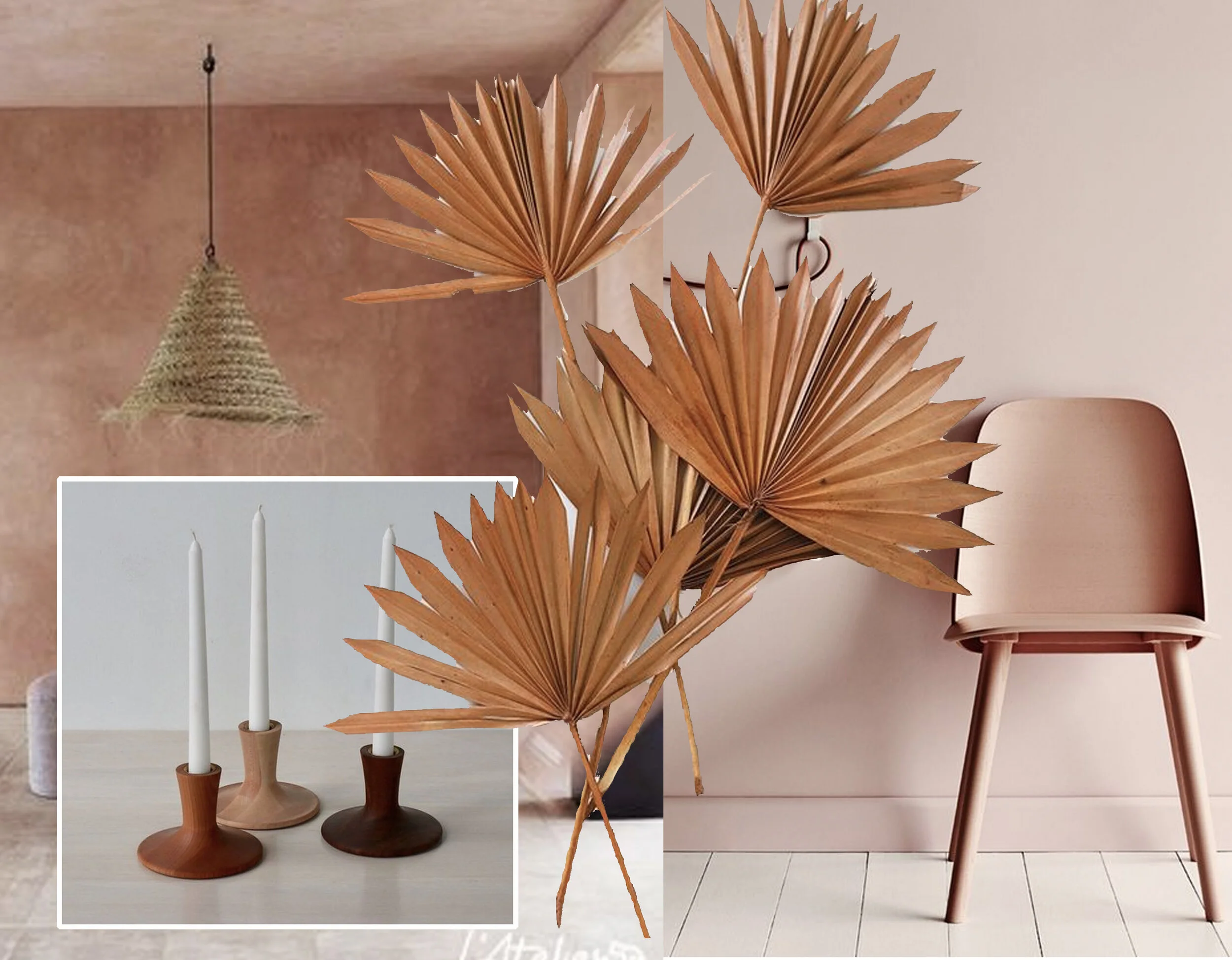 image in back via Life Style Nordic - Trumpet candle holder Prevalent Projects - picture on the right via Frenchy Fancy terracotta Sun Palm Aflora