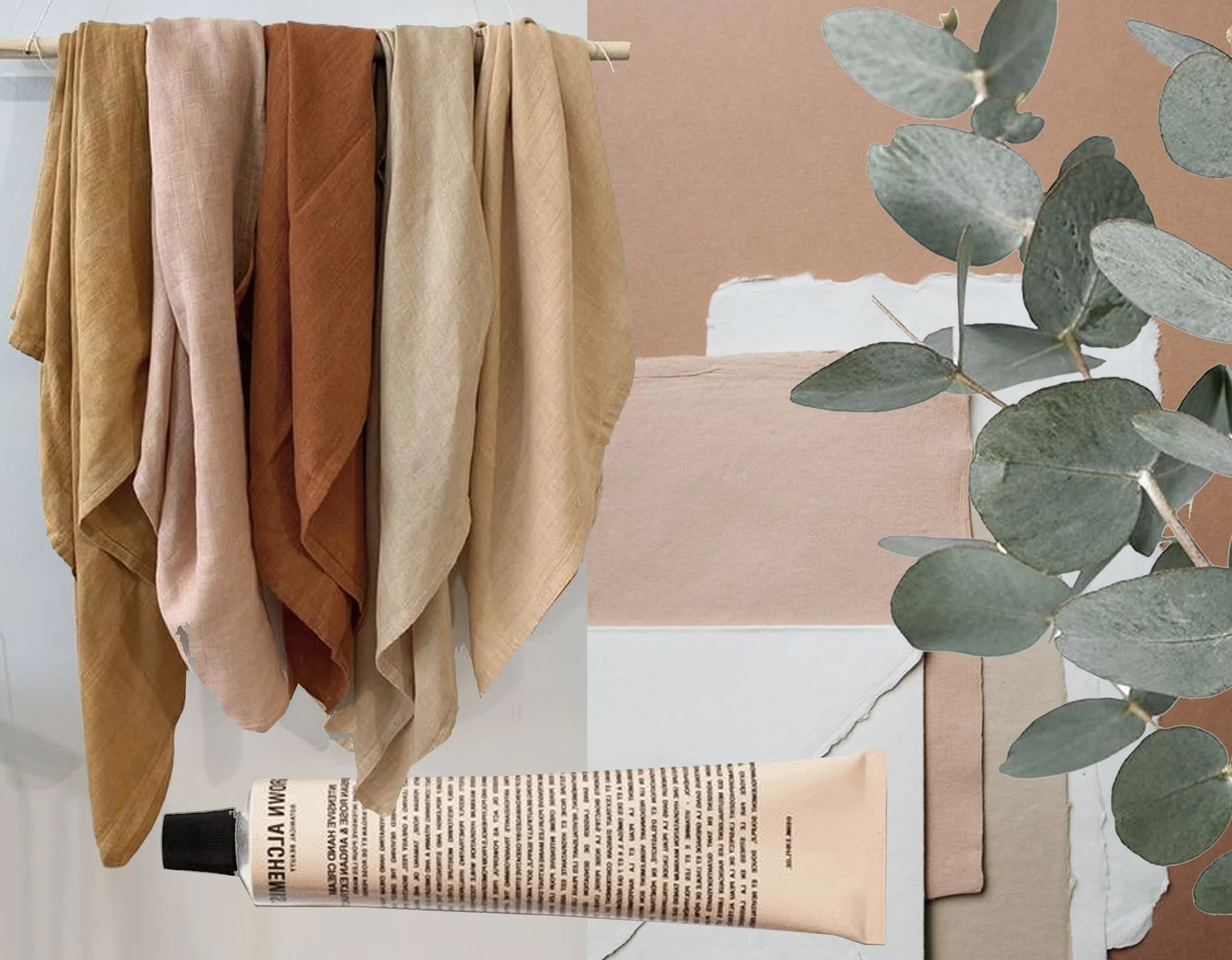 natural dyed baby blanket La Petite Leone - paper Traumanufaktur - Eucaliptus Hearts in Colors - hand cream Lekker Home -