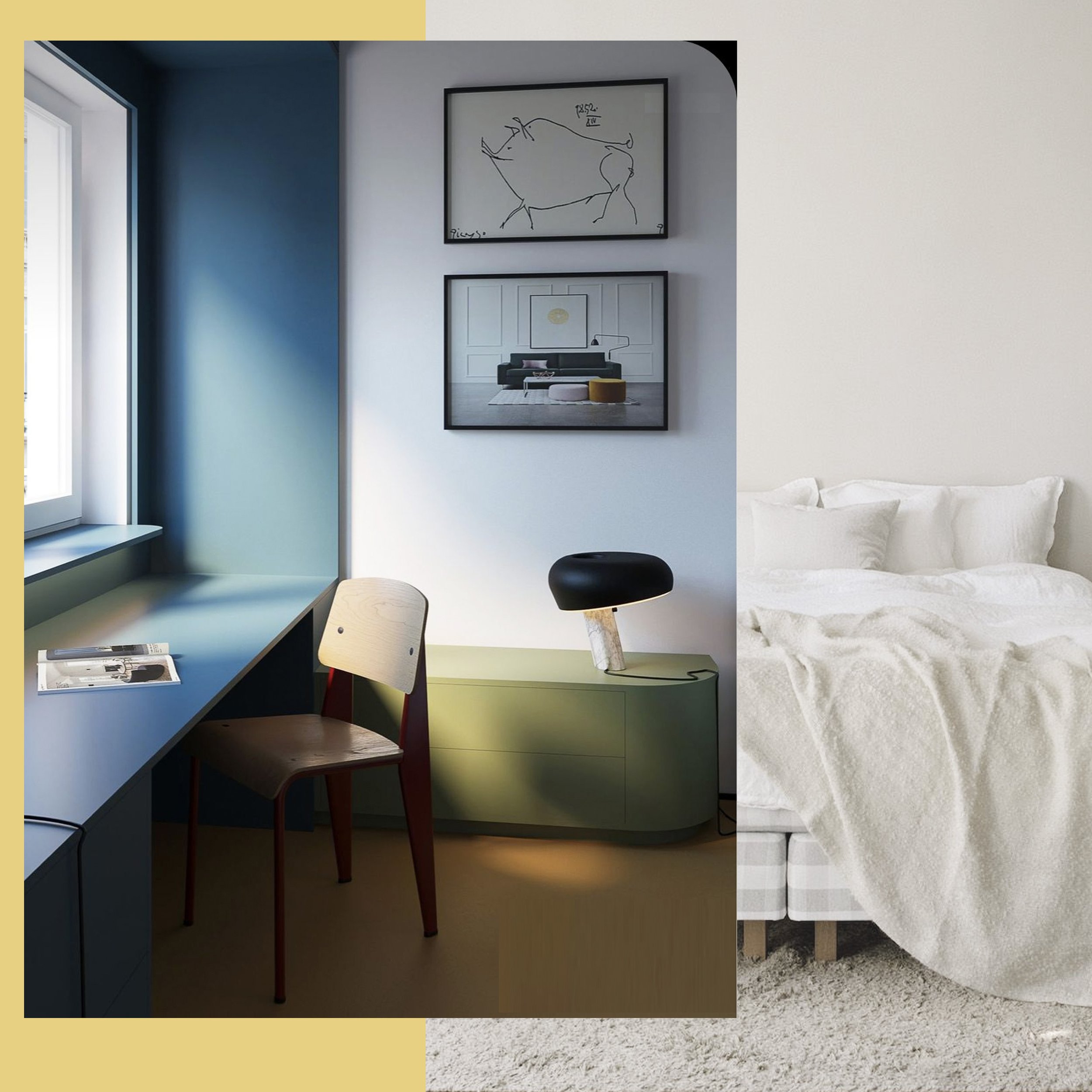 Pantone created another combination they called Atmospheric. A fresh palet with many clear, breezy blue tones and a warm yellow that will bring the sunlight into the room. It creates a crisp harmony that suits a study, a bedroom or your summer house by the seaside. You see, blue tones will remain important also this year.