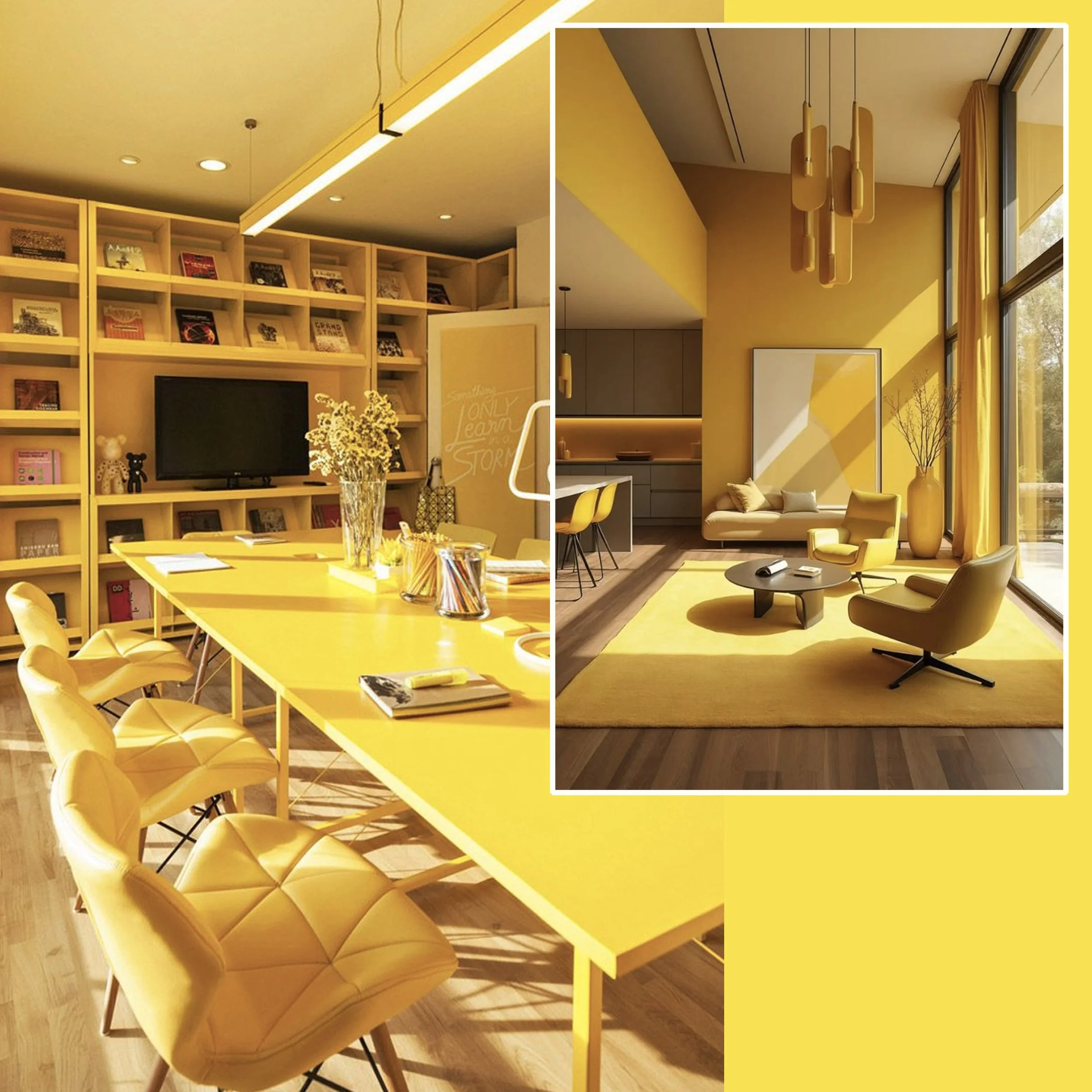 Yellow office, you think I’m crazy to suggest such thing? Yellow is a happy and uplifting color that has the power to bring everybody in a sunny, positive mood. A color that gives energy and vitality, just think of a bright, sunny day and how it makes you feel. Yellow is a color that helps you focus more effectively on the task in front of you, enhancing clarity. It is also a great color for memorising information, as it stimulates mental activity. When a brainstorming session is on the agenda, this bright color will open up the mood and encourages creativity. However, too much yellow can be overwhelming. Use it with moderation.