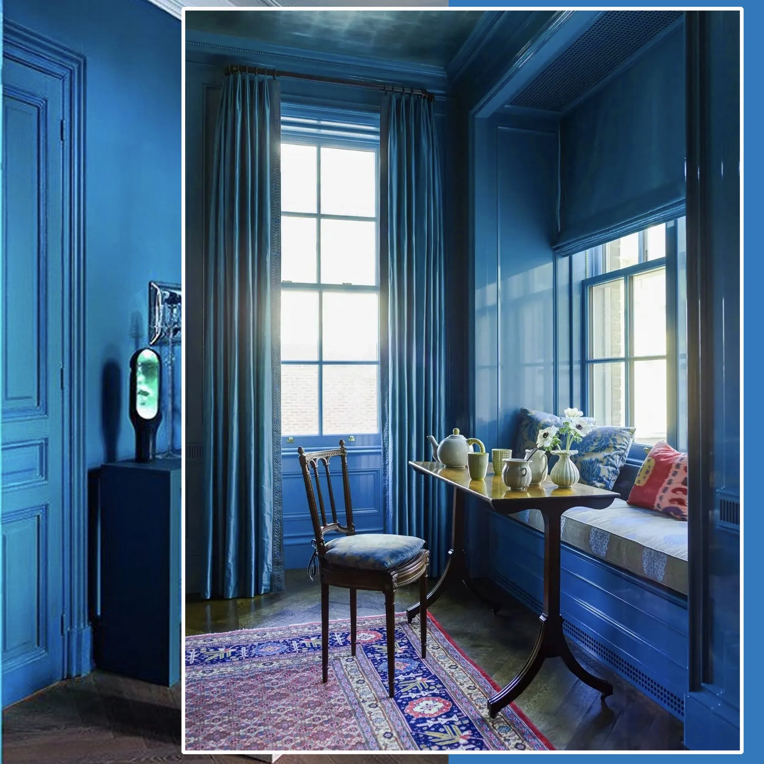 Blue is one of the most popular colors in the world. Why? It often makes us think of places like the beach and a clear blue sky, all images that evoke a sense of calm and relaxation. So no wonder that so many people go for blue. However, take care, as using to much blue in a space can make the room feel colder and less inviting to stay for a long time. Blue is a more masculine color. When re-decorating the home office, blue can be a perfect choice for the color drenching style, because it is know to enhance focus and boost productivity. A color that always will be around, never really going out of style.
