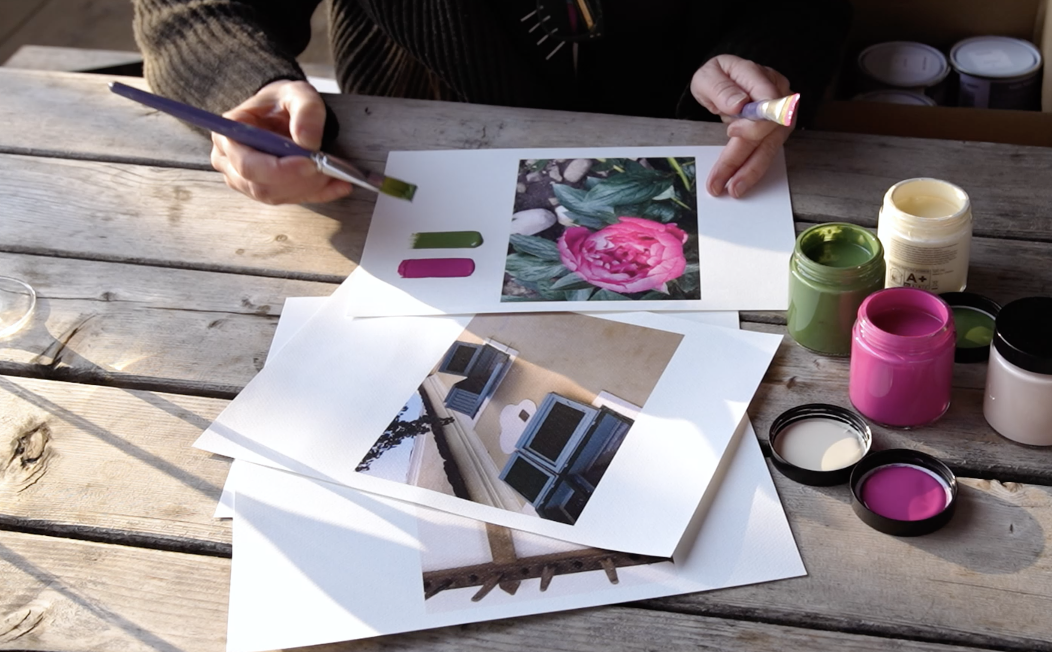 During one of the workshops in Viscri I organised a color hunt. Each participant had to paint some swatches to go around afterwards in the village to find their colors back.